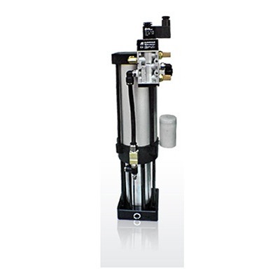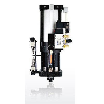 1、預(yù)壓式增壓缸:當(dāng)工作氣壓壓在液壓油表面時,液壓油會因壓縮空氣作用而流向預(yù)壓行程腔,此時液壓油會迅速推動軸心作位移,當(dāng)工作位移遇到的阻力大于氣壓壓力時預(yù)壓軸心則停止動作,此時,增壓缸的增壓段因?yàn)闅鈩訅毫幼鳎鰤狠S心亦開始作位移動作,并擠壓預(yù)壓缸體里的低壓油,使之增壓從而產(chǎn)生強(qiáng)大推力的效果。
